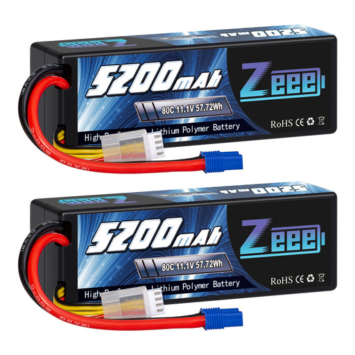 Zeee 3S Lipo Battery 5200mAh 11.1V 80C with EC3 Plug Hard Case for RC Car Racing Models(2 Pack)